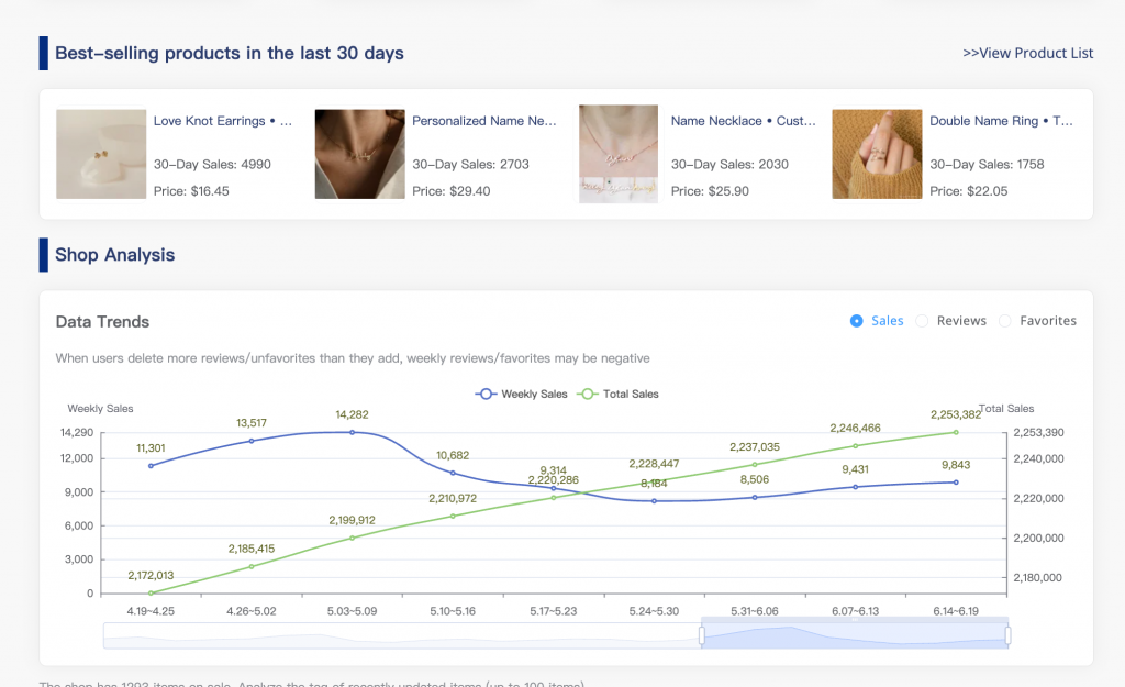 - Advanced Filters: Support filtering by total sales, total reviews, total favorites, weekly sales, weekly reviews, and weekly favorites.