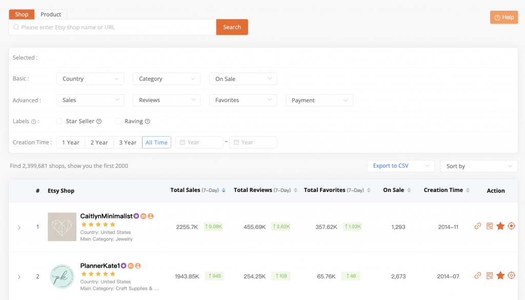 - Shop Creation Time: Allows you to quickly filter established or recently opened shops.