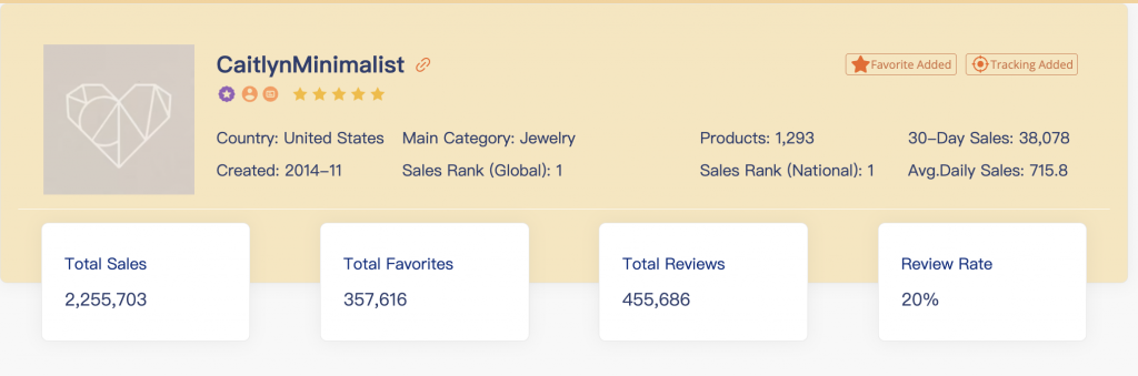 We provide you with basic information about the shops and summarized data on sales, favorites, reviews, and ratings.