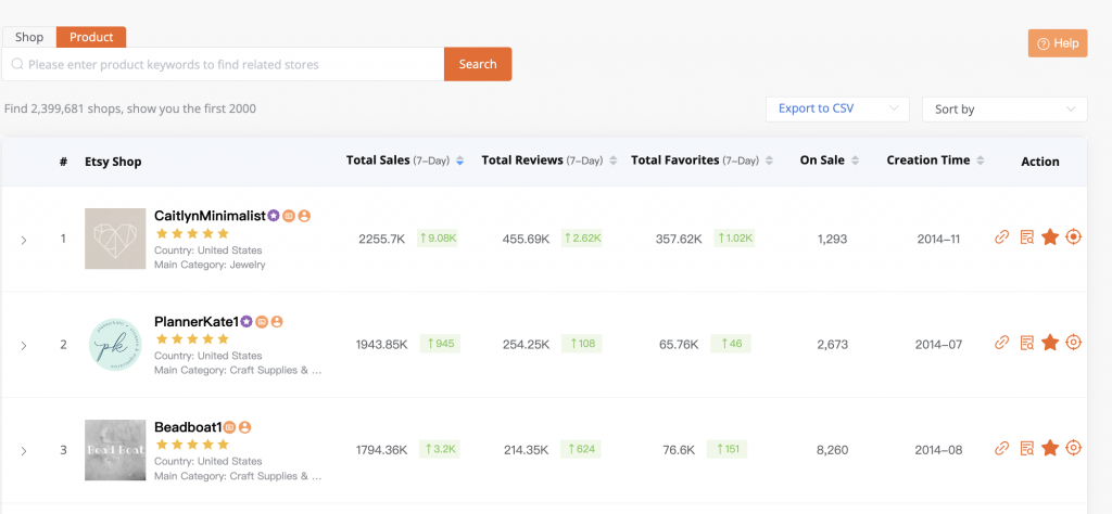 Through the Shop Database feature, you can discover successful Etsy shops and learn from their operational strategies and techniques. Here are some things to consider when using the Shop Database: